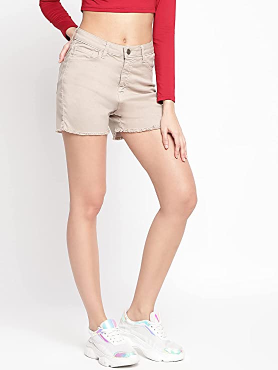 About this Item Designed with denim material Adorned with a solid pattern Soft & Breathable, Zip fly with button closure Metal trims featuring brand logo Above knee length for sexy look Additional Information Net Quantity1.00 count Generic NameDenim Shorts