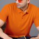 MOONVELLY Solid Men Polo Neck Orange T-Shirt