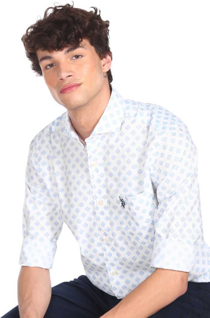 Product Details Pack of 1 Style Code USSHTP0117 Closure Button Fit Regular Fabric Cotton Blend Sleeve Full Sleeve Pattern Printed Reversible No Collar Spread Color Blue Fabric Care Gentle Machine Wash Suitable For Western Wear