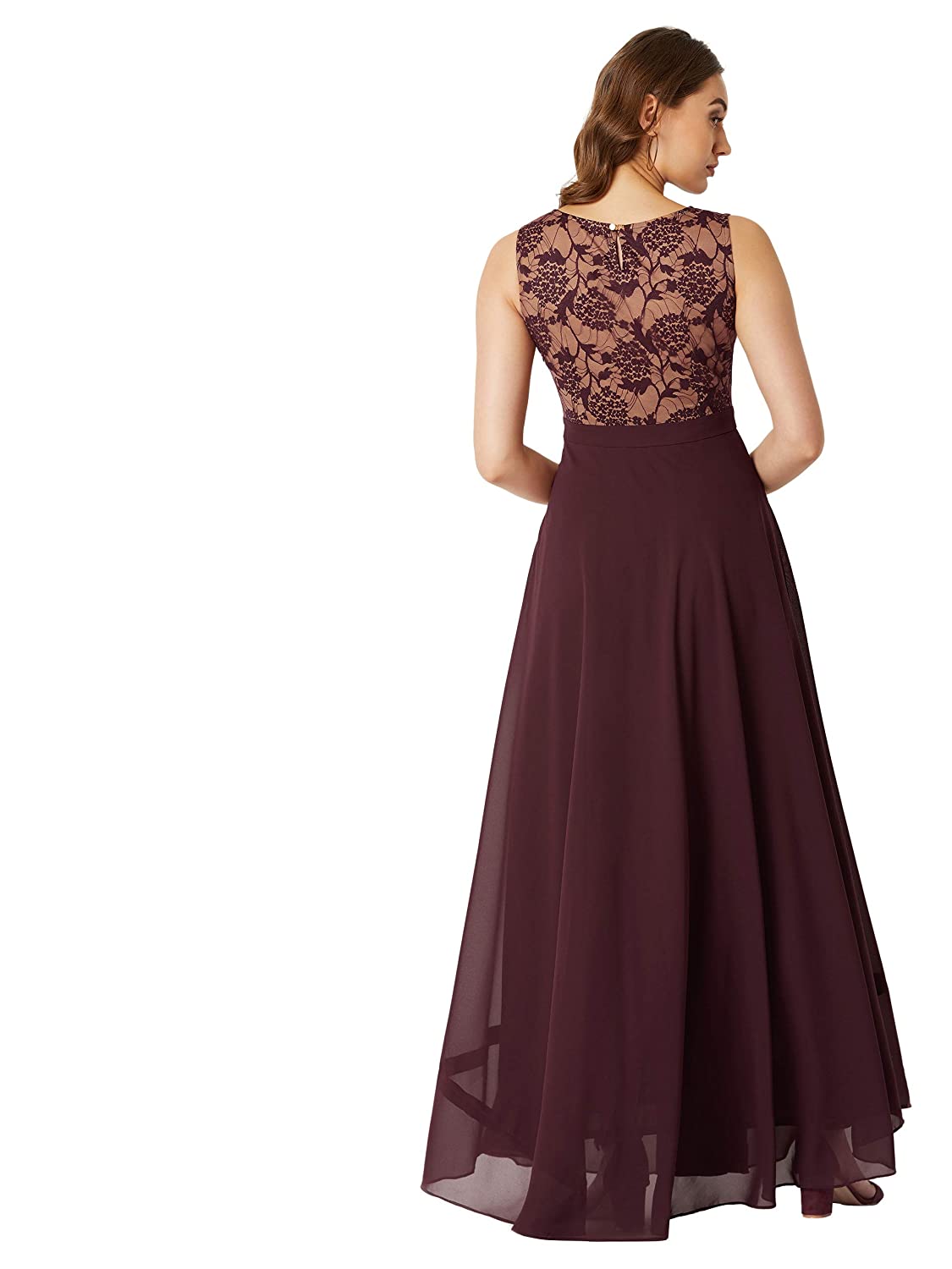March 11, 2023Miss Chase Women’s Lavender Round Neck Sleeveless Solid Lace Overlaid Maxi Dress