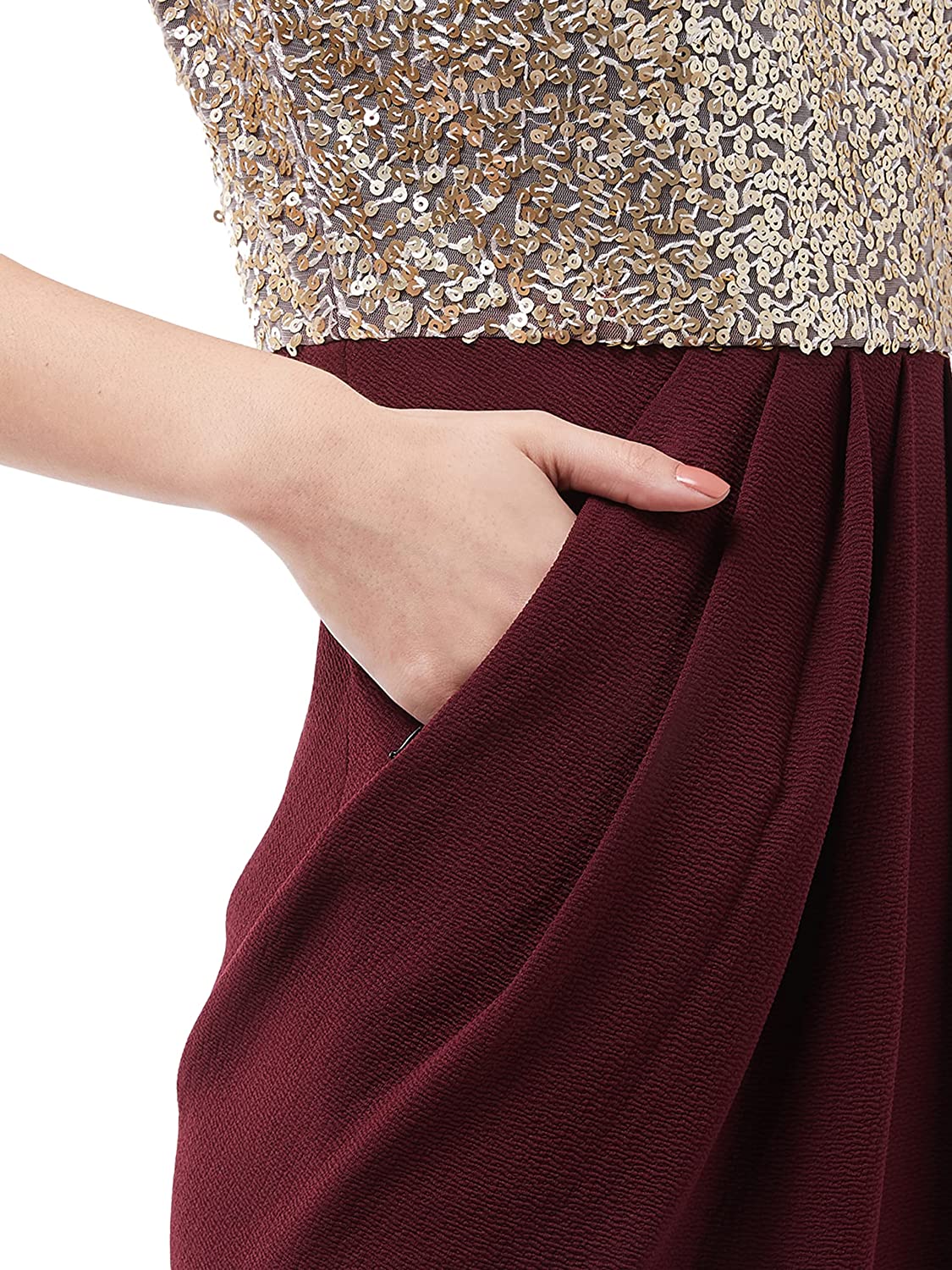 Be the first to review “Miss Chase Women’s Wine Halter Neck Sleeveless Solid Embellished Midi Dress” Cancel reply