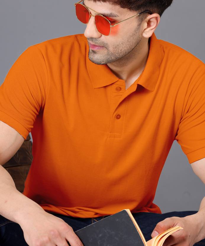Solid Men Polo Neck Orange T-Shirt