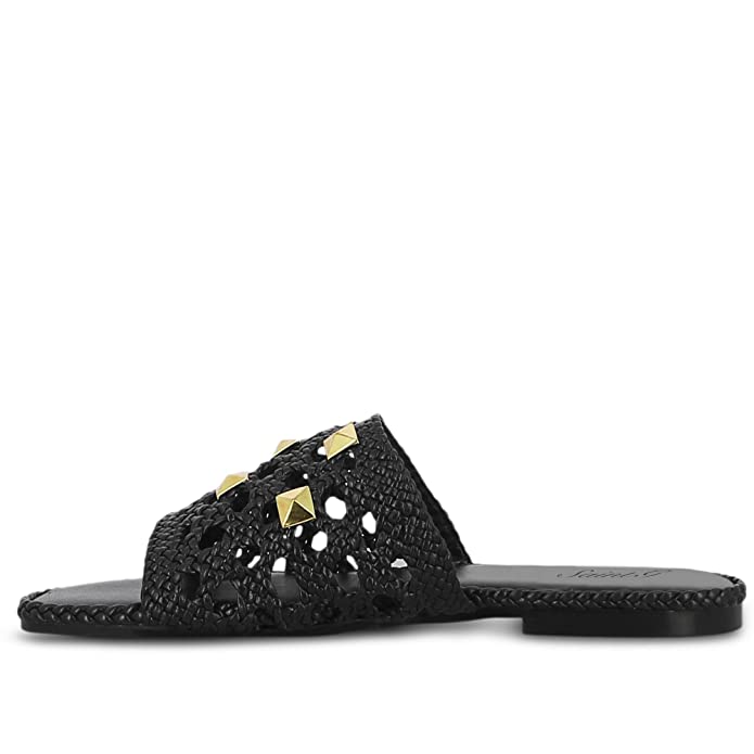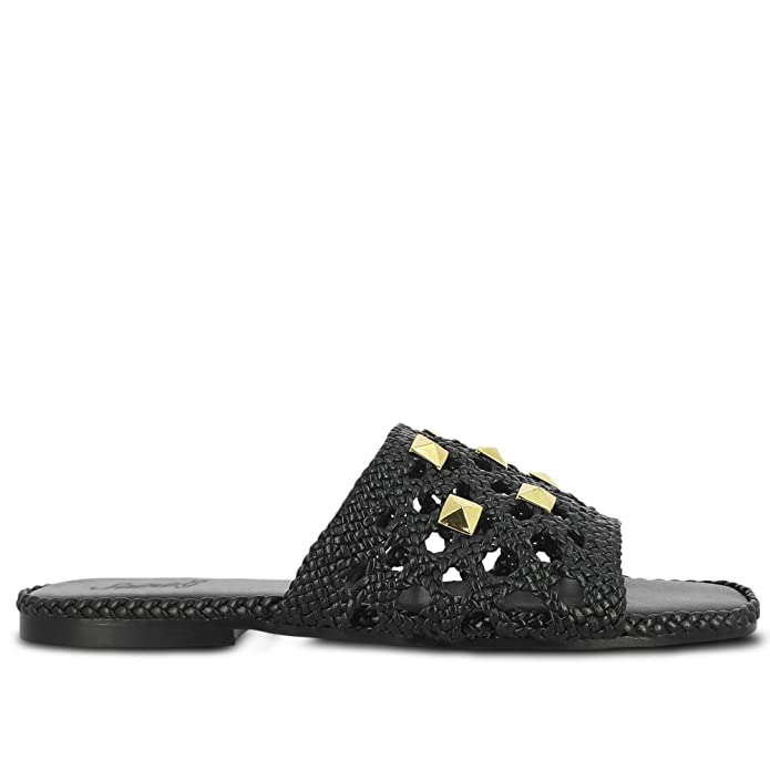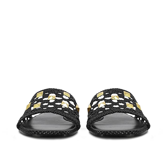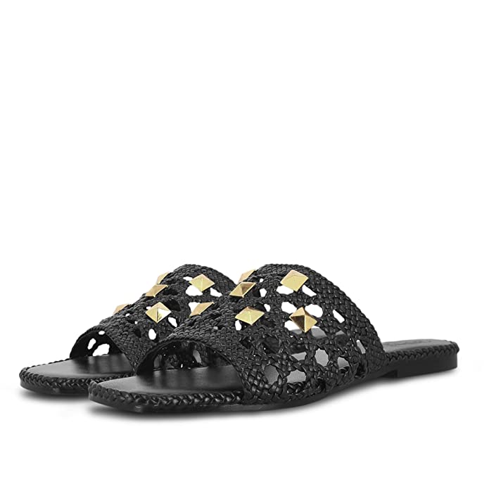 About this Item Upper : Black leather slides embellished with Gold Studs Lining : Breathable Leather lining Insole : Padded Leather Footbed Closure : Slip On Closure Sole : Tunit Additional Information ManufacturerKiwi Enterprises PackerSaintG Item Weight450 g Item Dimensions LxWxH25.4 x 8.9 x 3.8 Centimeters Net Quantity1.00 count Generic NameSandal