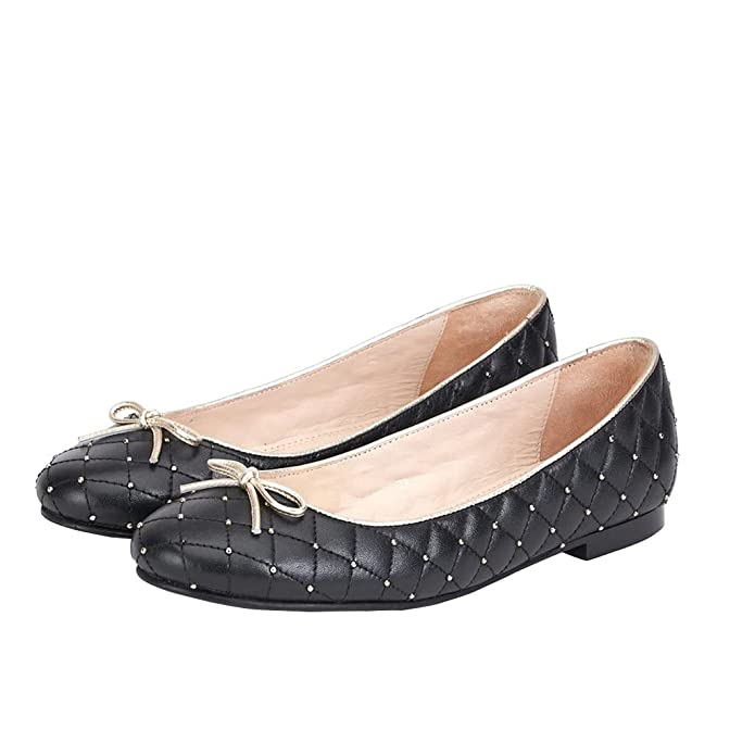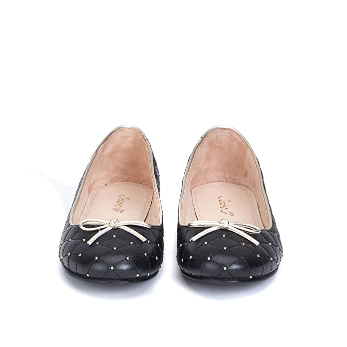 About this Item A Beautifully handcrafted metal studded black leather Ballerina InsoleSlipsole- Leather With Leather Lining Metal Studded And Stitched Detail Rounded Toe with Tunit Sole A high Fashion Women ballerinas for Casual Wear Additional Information Item Weight500 g Net Quantity1.00 Pair